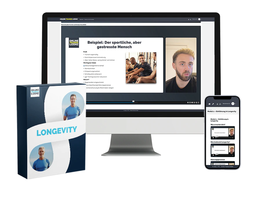 Longevity bedeutet nicht ewige Jugend, sondern die eigene Gesundheit langfristig zu erhalten. Im Mittelpunkt stehen dabei Lebensqualität und Leistungsfähigkeit – körperlich wie mental - heute und in der Zukunft. Es verbindet Erkenntnisse aus der Alters- und Langlebigkeitsforschung, Zellgesundheit und Bereiche wie Bewegung, Ernährung, Schlaf und Stress. Kurz gesagt: Heute so leben, dass du auch im Alter noch gesund, beweglich und fit bist.